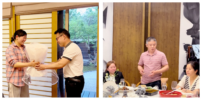 經(jīng)過一天的相處,各小家庭之間都增進了了解,晚上,徐總特意準(zhǔn)備了豐盛的晚宴,大家也早已和諧融洽,談笑風(fēng)生,暢所欲言,分享感悟。席間,家屬們鼓勵并支持他們的“愛人”、“爸爸”全身心投入到未來的工作中,為前程的發(fā)展盡一份家屬的綿薄之力。