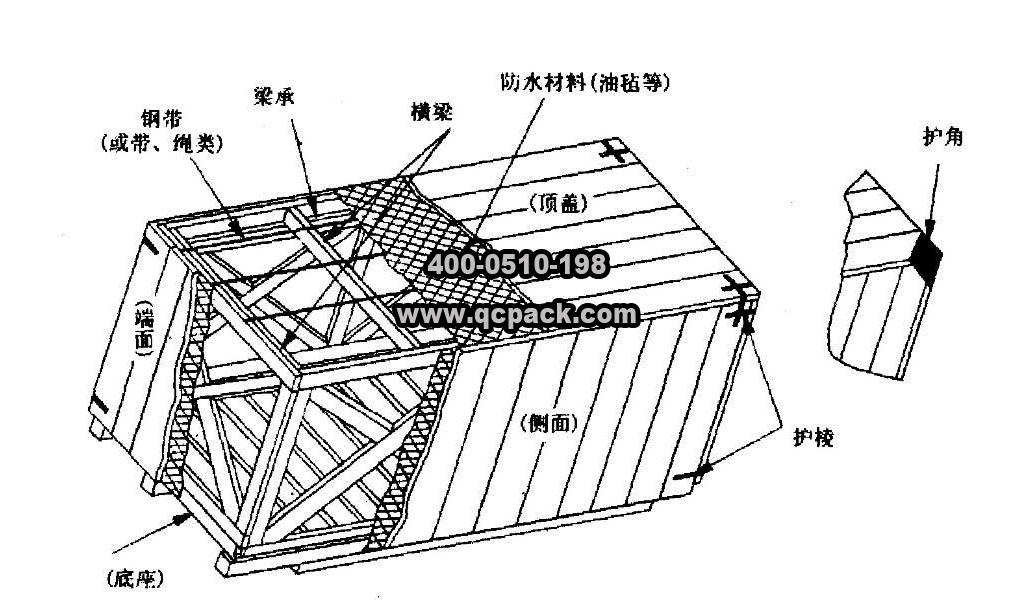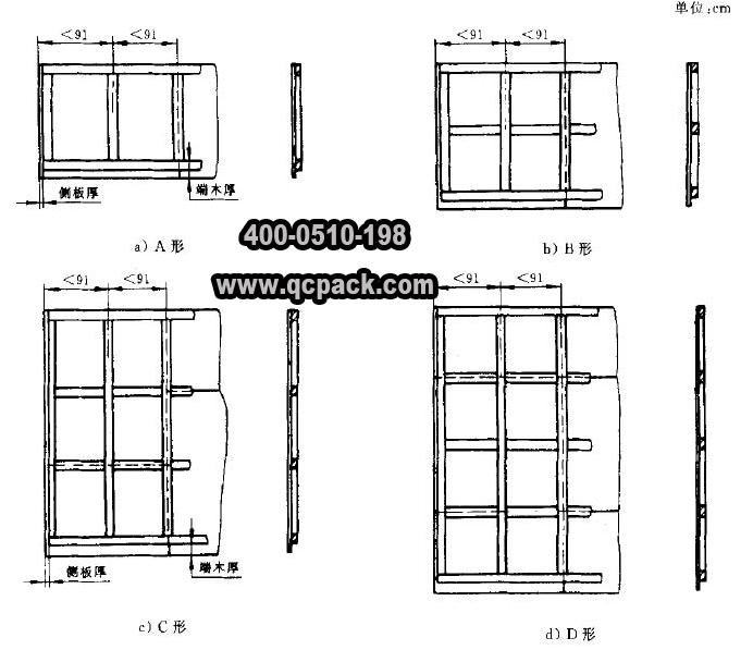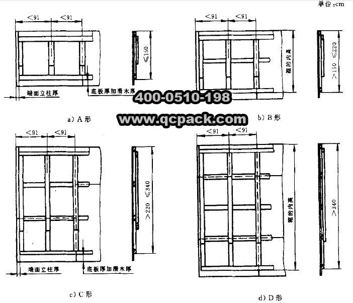 框架木箱的底座也是由滑木、輔助滑木、端木、枕木和底板組成的,其結構與滑木箱基本相同。底座在裝上內裝物而未裝側面和端面時,不能單靠底座進行起吊作業,特殊情況需要起吊時,需將底座加固,參照《GB/T 10819-2005 木制底盤》進行。
